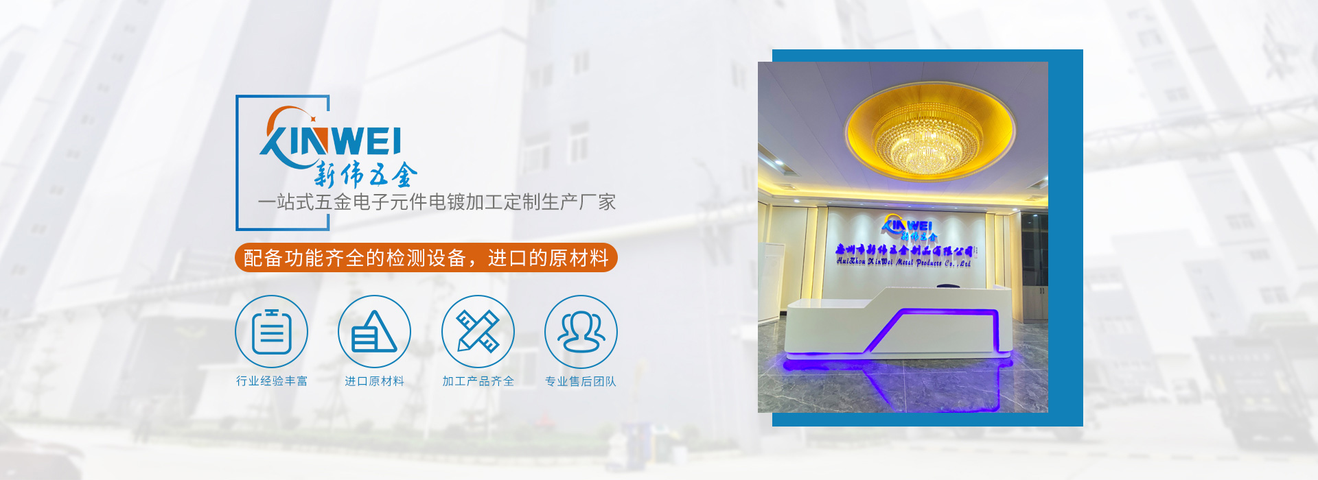 惠州市新偉五金制品有限公司(簡(jiǎn)稱:新偉五金)坐落于中國(guó)廣東省惠州市,成立于2010年,是一家專業(yè)電鍍各種高品質(zhì)功能性的環(huán)保五金電子元件供應(yīng)商,公司已通過ISO9001:2015及IATF16949:2016質(zhì)量體系認(rèn)證。客戶至上,品質(zhì)至上,承蒙新老客戶的信賴,公司發(fā)展迅速,廠房車間面積10000平方米,現(xiàn)有員工200名,并擁有一批從事電鍍行業(yè)10年以上、經(jīng)驗(yàn)豐富的技術(shù)骨干,為客戶解決許多疑難問題,另有一支品質(zhì)工程小組,專業(yè)檢測(cè)產(chǎn)品品質(zhì),杜絕不良品外流,深受客戶好評(píng)。